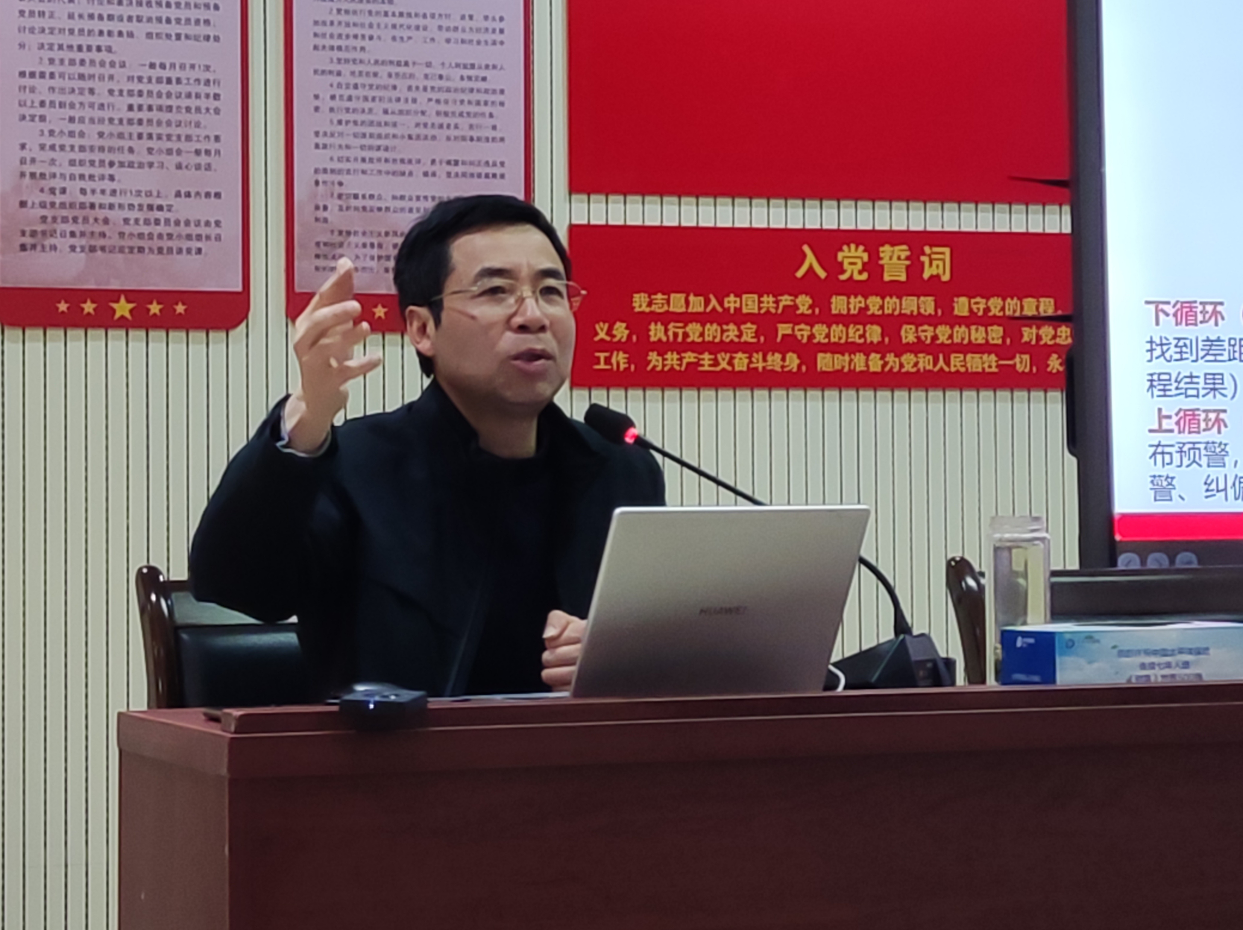 培训会上,杨主任主要从“什么是诊改”“如何诊改”和“诊改的价值”三个方面进行详细讲解,摆事实、讲案例,有理论、有实操,他深入浅出地分析了“建目标”“定标准”“建平台”以及“建制度”,强调“诊改”工作就是要通过全员、全过程、全方位的参与,实现自我评价、自我改正、自我提升,达到规范办学、专业办学的效果。