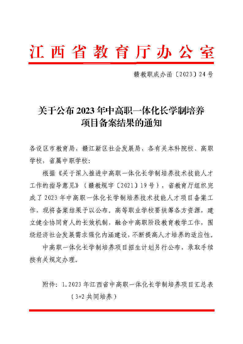 关于公布2022年中高职一体化长学制培养项目备案结果的通知