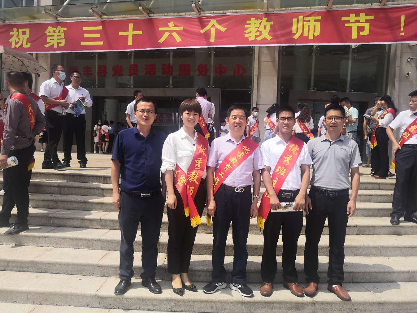 (赖红忠(左三)荣获2020年信丰县优秀教育工作者)