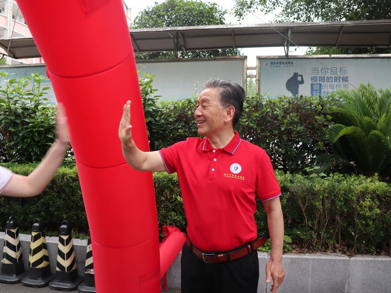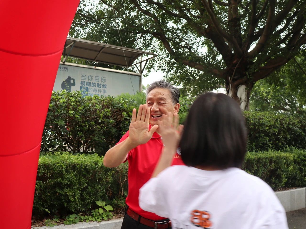 与同学们一一击掌,传递力量