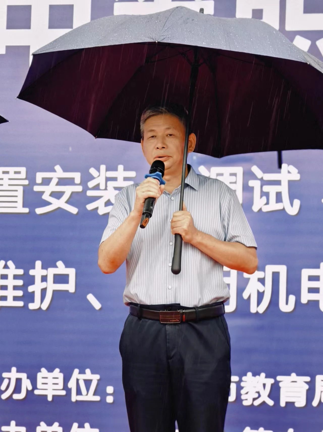 微风细雨送清凉,竞赛热情正高涨。启动仪式上,市教育局三级调研员杨人中宣布比赛开始,县教体局机关党委副书记王飞虎致贺词,学校董事长赖跃东代表学校致欢迎词,学校总经理赖红忠、校长赖敏慧等携师生代表参加仪式。