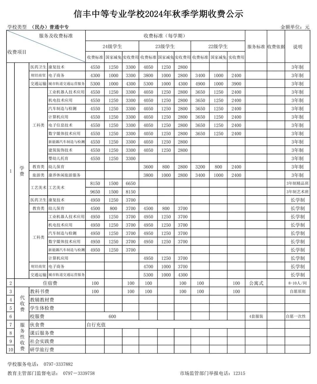 为进一步加强收费管理,规范收费行为,切实维护学生和家长的合法权益,按照上级文件精神,现将我校2024年秋季收费项目公示如下: