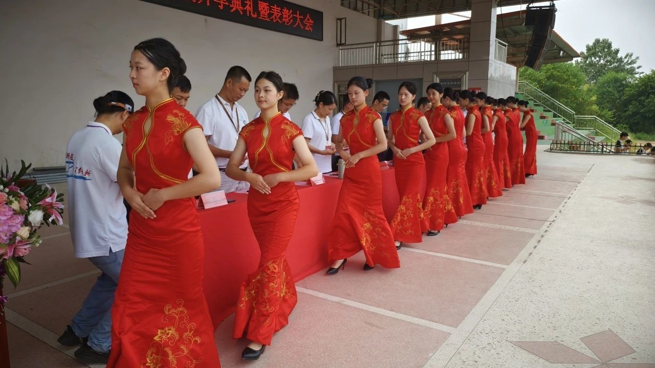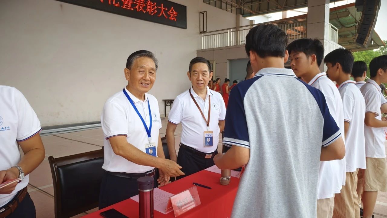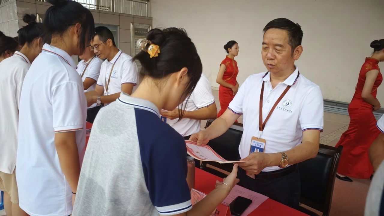 颁奖环节,学校董事长赖跃东、总经理赖红忠携学校行政班子为获奖师生颁发奖品和证书,党支部书记肖建平宣读获奖名单,工会主席、副校长王东主持颁奖仪式