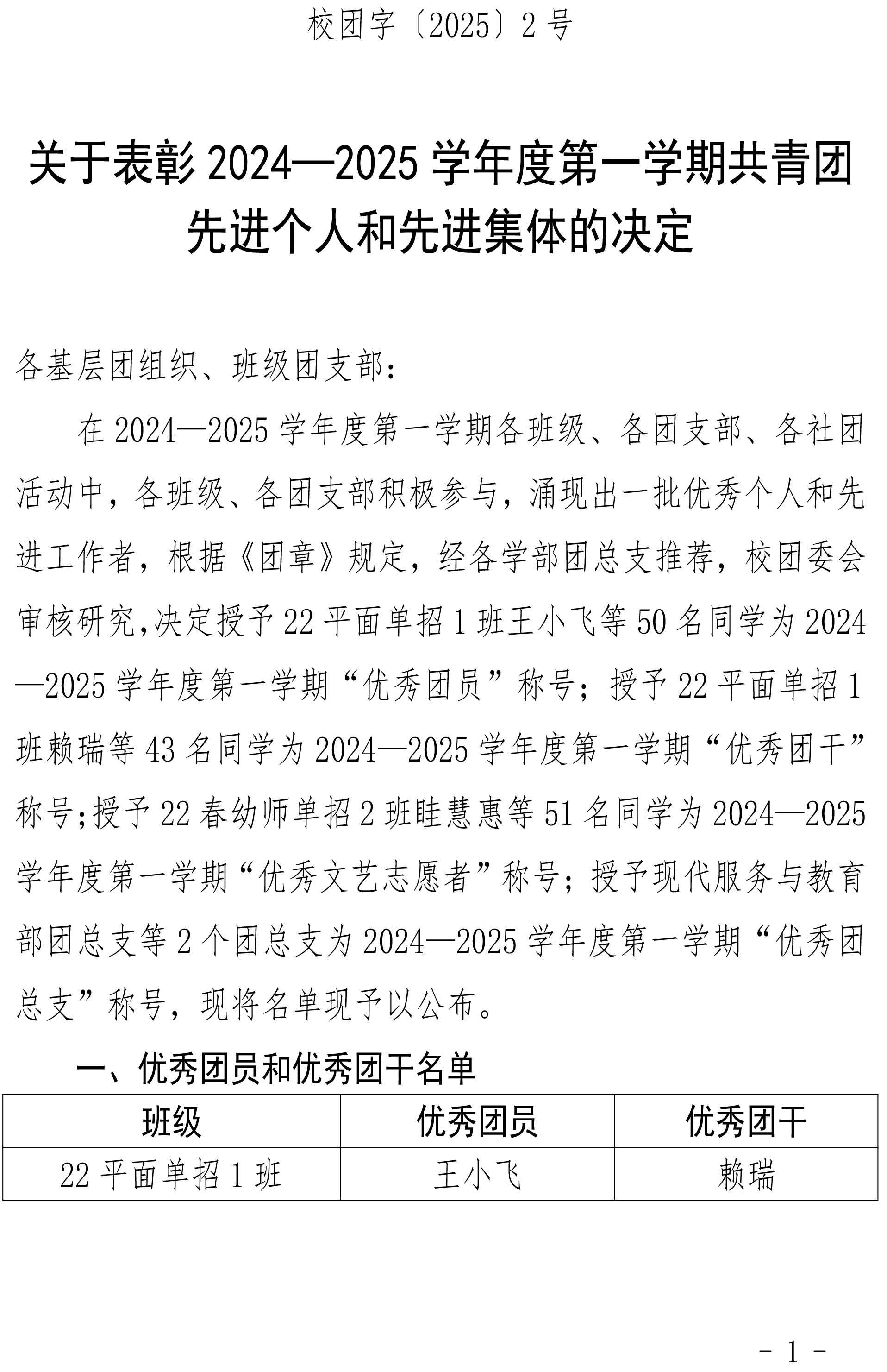 关于表彰 2024—2025 学年度第一学期 学生先进个人和先进班集体的决定