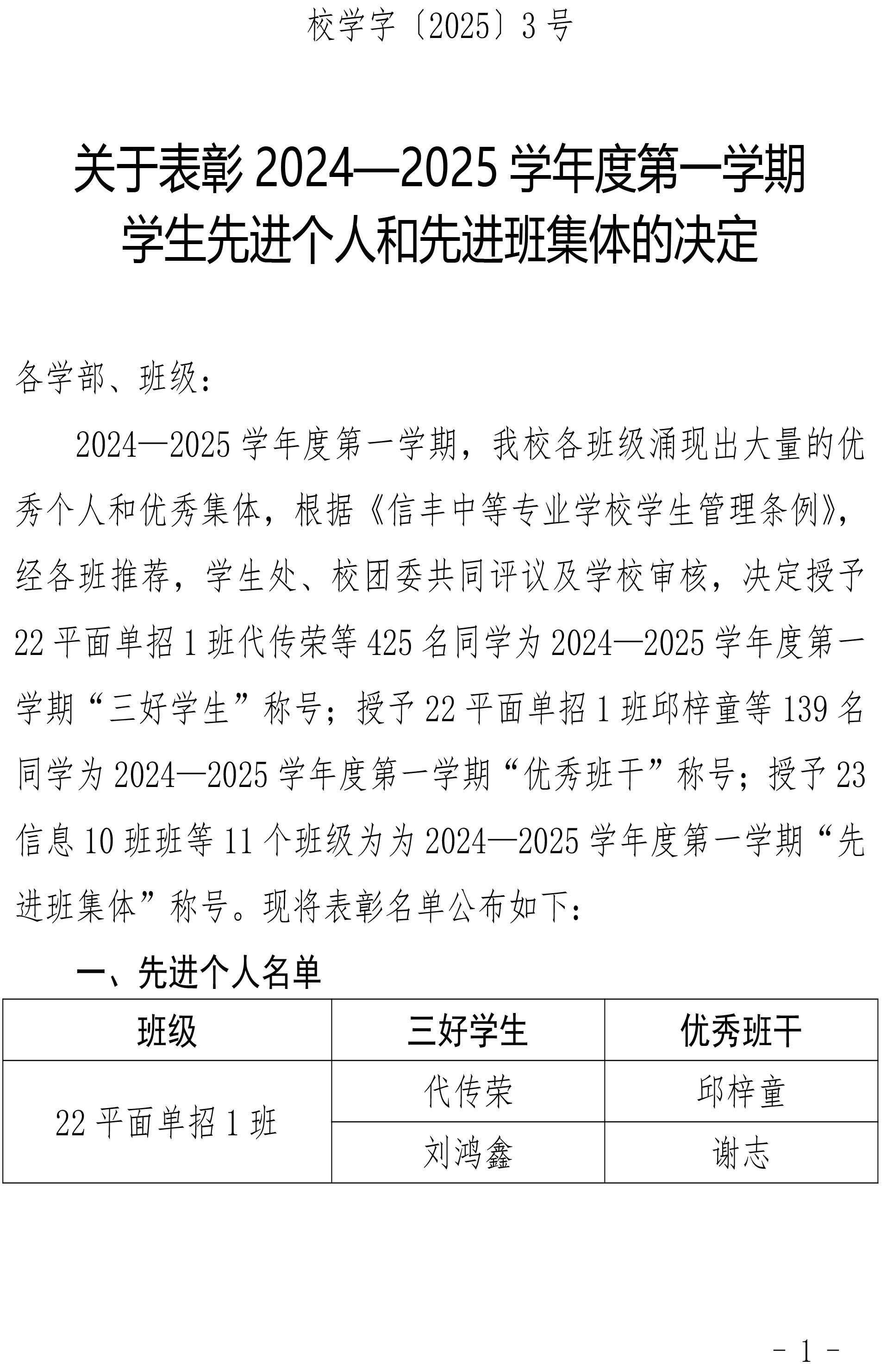 关于表彰 2024—2025 学年度第一学期共青团 先进个人和先进集体的决定